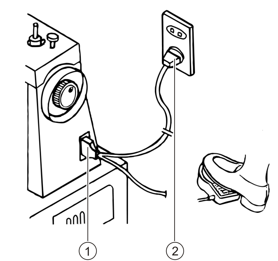 - Stecken Sie den Kupplungsstecker (1) in die Nähmaschine.